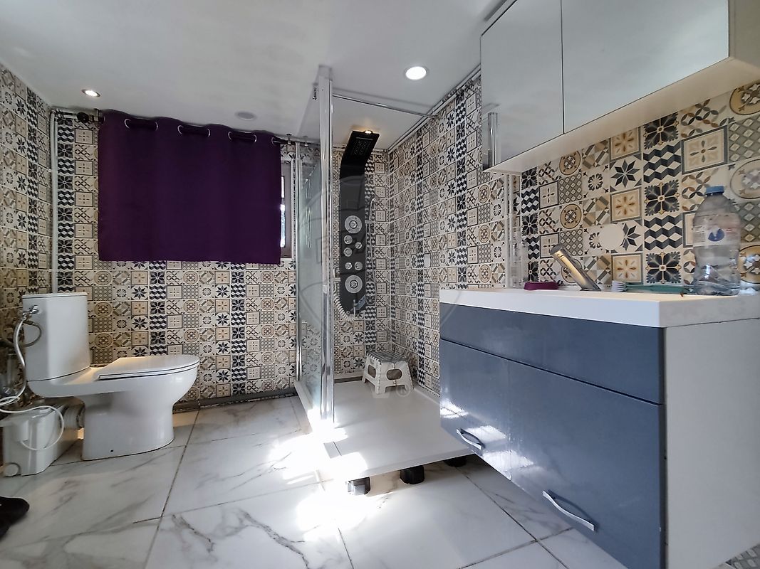 * Au RDJ : d’une salle manger – cuisine équipée , d’une chambre, d’une salle d’eau – Wc, d’une véranda et divers coins de rangements .